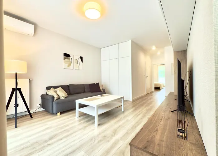 Apartament jest wyposażony w wyposażony aneks kuchenny, piekarnik i zmywarkę do naczyń. Ten apartament mieści się w odległości 5 km od lotniska Chopina.